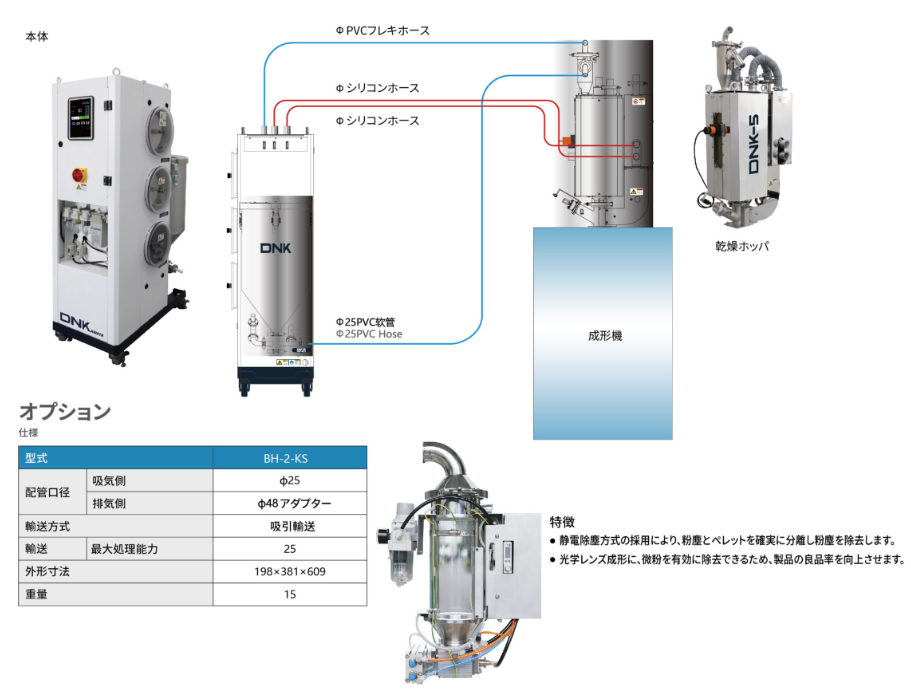 ストックタンクから成形機まで材料の品質を最適管理 材料にダメ-ジを與えず、安定成形