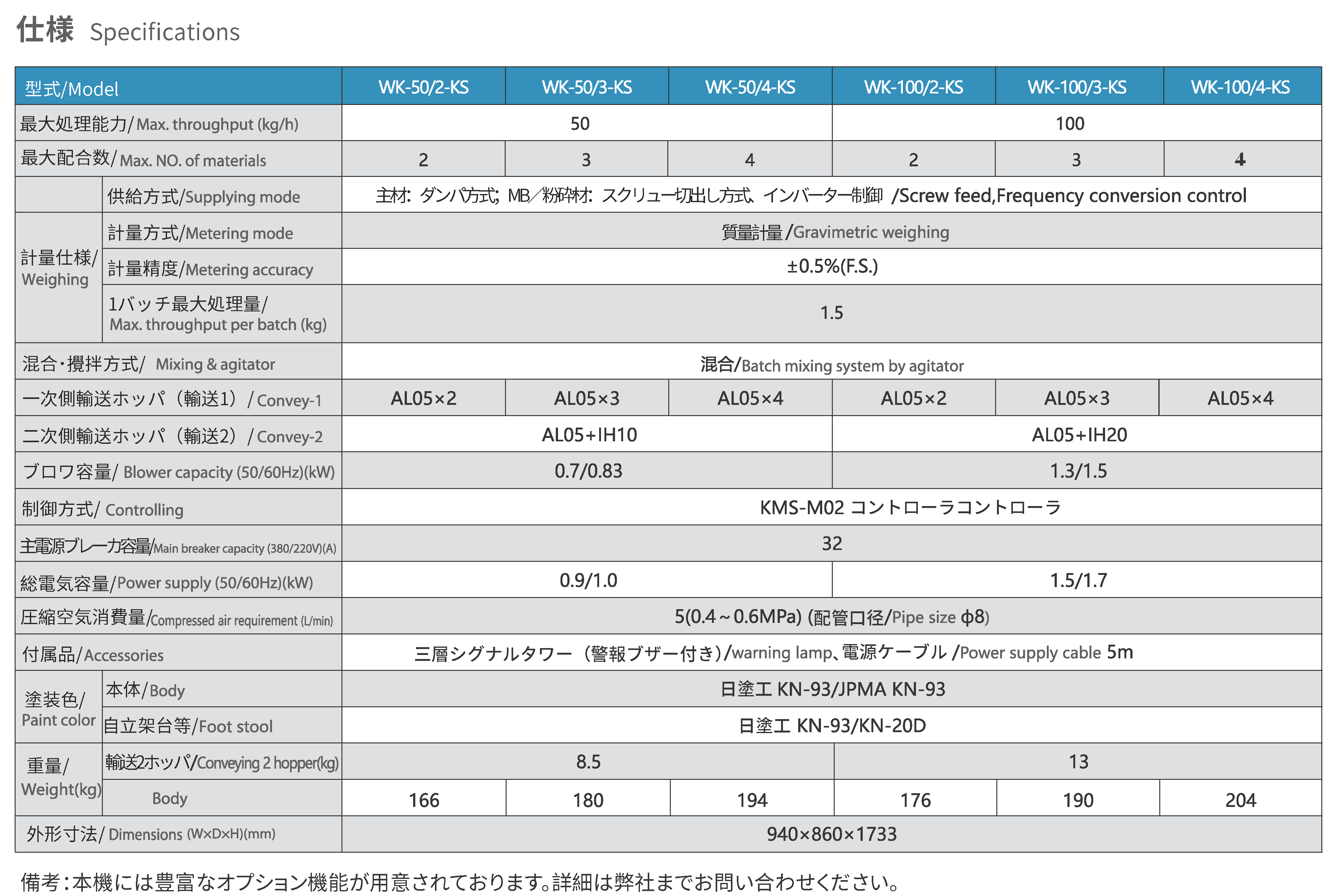 質量計量混合機 WK series